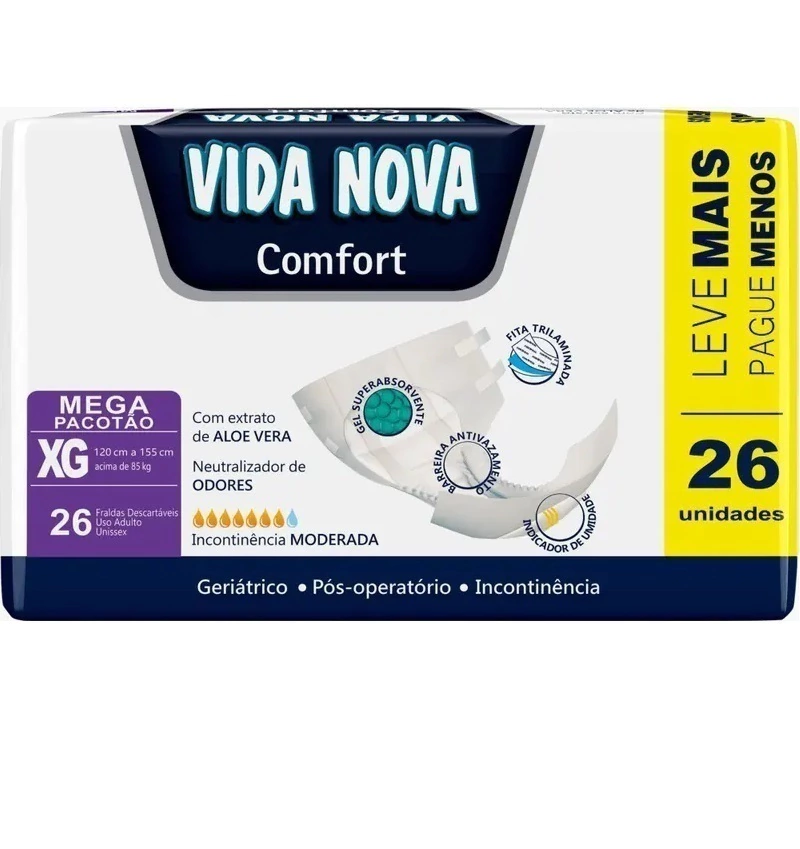 💡 Unissex e ideal para incontinência moderada, a Fralda Vida Nova Confort XG proporciona segurança, conforto e bem-estar no dia a dia.